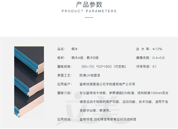 專(zhuān)業(yè)籃球場(chǎng)木地板,參照德國(guó)DIN標(biāo)準(zhǔn),結(jié)構(gòu)標(biāo)高100mm完全滿(mǎn)足運(yùn)動(dòng)木地板的保護(hù)功能、運(yùn)動(dòng)功能、技術(shù)功能,適用于各類(lèi)教學(xué)訓(xùn)練、表演等。 |