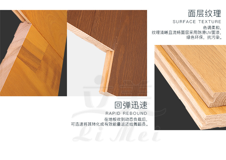 挑選舞蹈木地板,不能以平時挑選普通家裝地板時的要求去選擇,因為舞蹈木地板之后會承受不同程度的運動過程,所以在尺寸的穩(wěn)定性和牢固性上有著較高的要求。