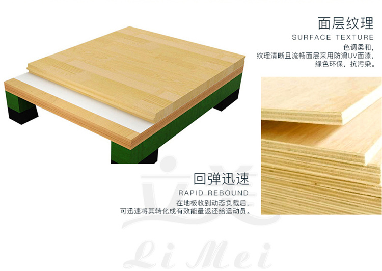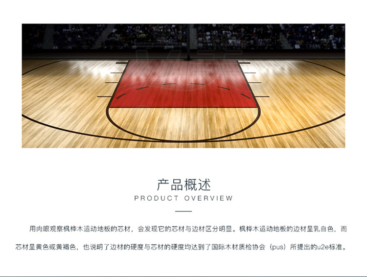 面板介紹 專業(yè)籃球場木地板,參照德國DIN標(biāo)準(zhǔn),結(jié)構(gòu)標(biāo)高100mm完全滿足運動木地板的保護功能、運動功能、技術(shù)功能,適用于各類教學(xué)訓(xùn)練、表演等。