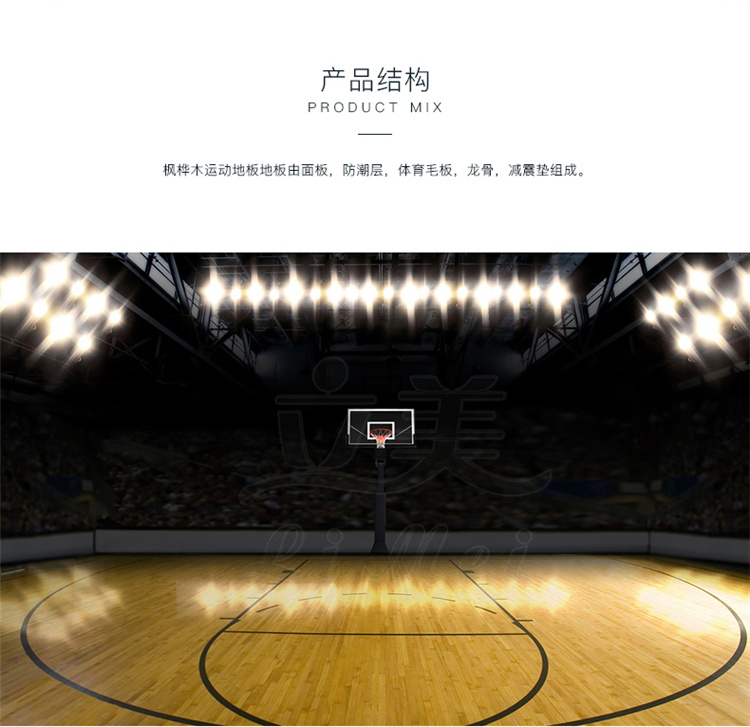 楓樺木運動地板地板由面板,防潮層,體育毛板,龍骨,減震墊組成。