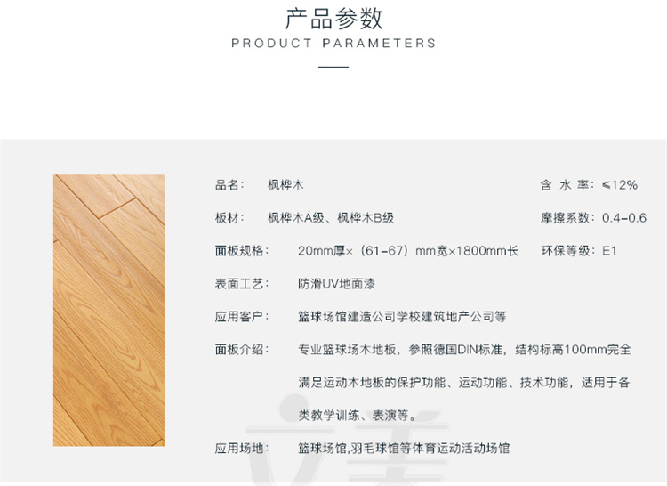 板材: 楓樺木A級、楓樺木B級 摩擦系數(shù): 0.4-0.6