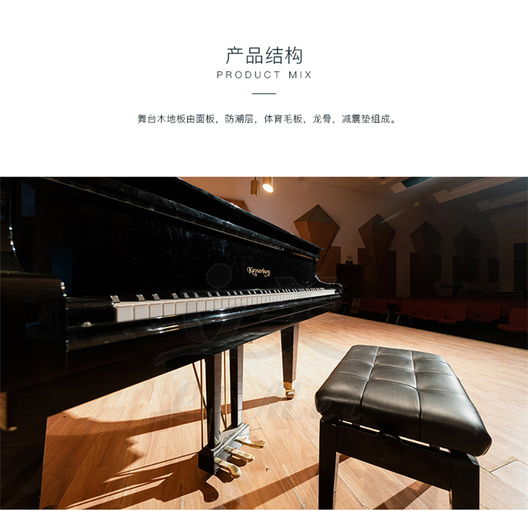 專業(yè)舞臺木地板,參照德國DIN標準,結構標高100mm完全滿足運動木地板的保護功能、運動功能、技術功能,適用于各類教學訓練、表演等。 |