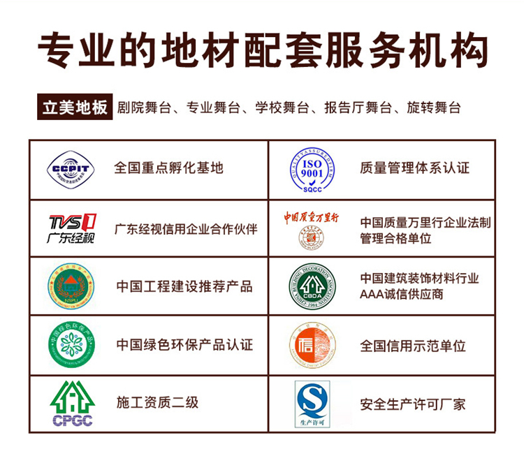 舞臺運動木地板應盡可能較好的滿足各種專業(yè)舞蹈表演的使用要求。該要求是指通過地板的獨特功能設計,更大限度的避免演員因過多的能量消耗而產(chǎn)生疲勞,影響演出效果。