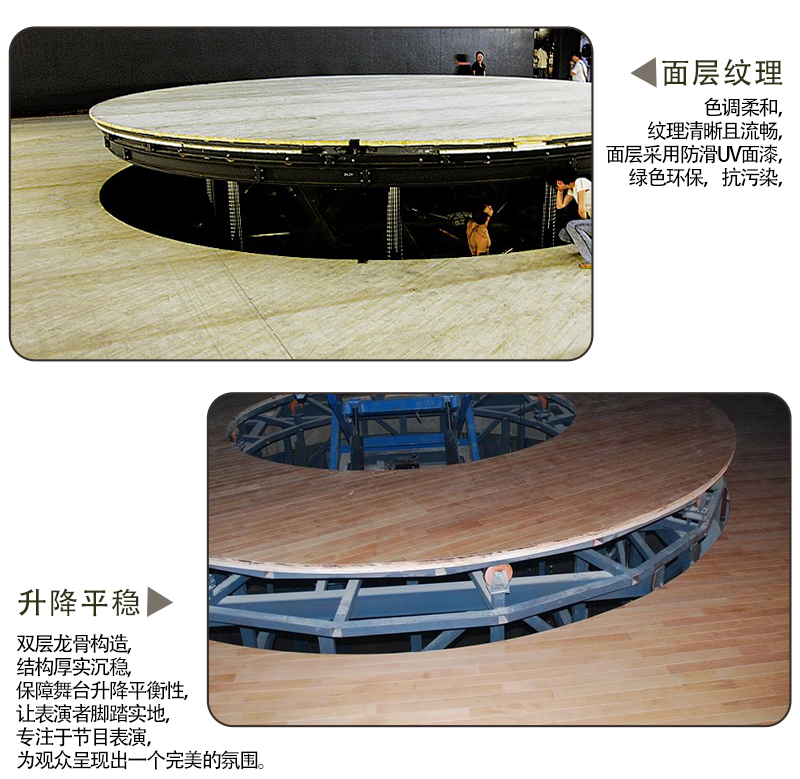 舞臺運動木地板可以長期保持運動功能、保護功能及使用功能。 劇院舞臺運動木地板是演員表演的中心區(qū)域,這里的舞臺木地板要求必須滿足堅硬、耐磨、具有彈性和防止伸縮不平等要求。